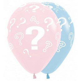 Babaváróra 12" 30cm latex rózsaszín és kék léggömb, kérdőjelekkel, 25db