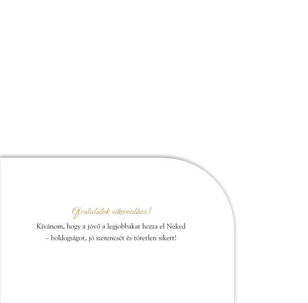 Ballagásra szánt pénz vagy utalvány átadásához használható zsebes borítékos lap. Elején arany metál fólia gratuláló felirattal, a zseben az alkalomhoz illő szép idézettel. Pasztell sárga színű, LA/4 méretű borítékkal. Hajtott lapméret: 108 x 216 mm