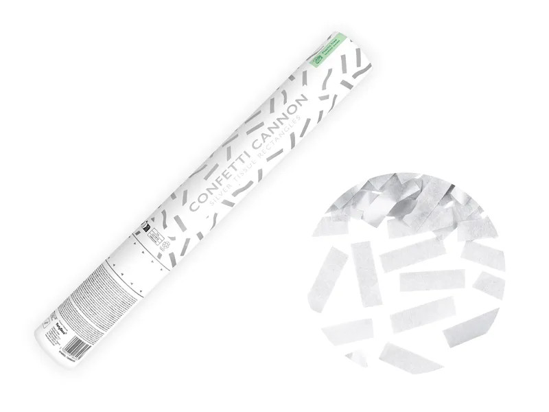 Konfetti ágyú 40cm Ezüst selyempapír téglalapokat kilövő
