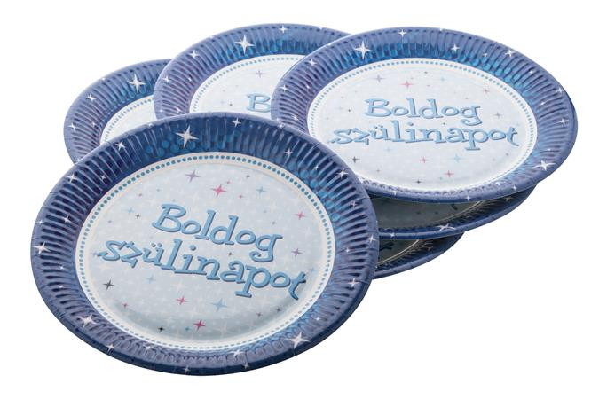 Papírtányér Boldog Szülinapot! 23cm 6db, Kék