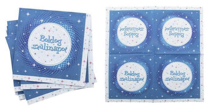 Szalvéta 33x33cm Kék, Boldog Szülinapot, 16db